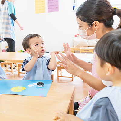 また、泣いていた子が泣かずに笑顔で過ごしたり、保育者の膝に座り、ゆっくりと安心して過ごしたりする姿を見た時。
